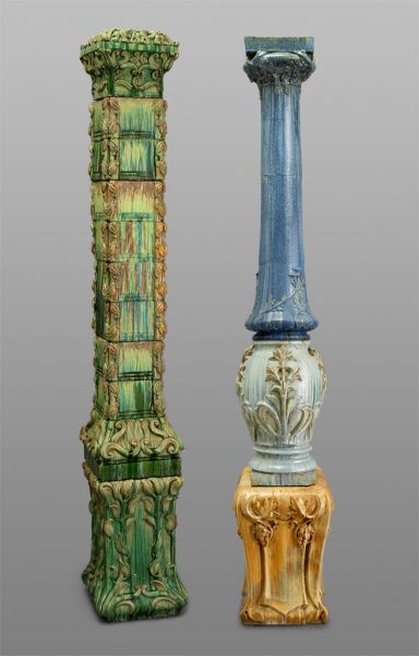 This year, the Budapest the ensemble of Alexander Bigot’s monumental architectural ceramics can be seen for the first time since the Paris World's Fair of 1900. The ensemble was acquired with government funds by the director Jenő Radisics at the Paris Universal Exposition 1900 and has never been on display so far. Alexander Bigot’s pavilion constructed of Art Nouveau architectural sample pieces –wall revetments, fireplace frames, columns with plastic decorations, brackets, friezes- was bought entirely by the museum and was transported to Budapest after the exposition. The objects were deposited in the huge basement of the Museum of Applied Arts. The designers of the architectural ceramics were such outstanding French architects and sculptors of the period like Jules Lavirotte (1864-1924) or Paul Jouve (1878-1973). Similar pieces of architectural ceramics displayed at the exhibition can be found on facades of several Art Nouveau apartment buildings and palaces in Paris even today.