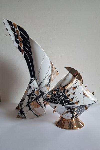 Több dolgot is vettek tőlem, főleg a ’80-as és ’90-es években készített munkáimat, (Mozdulat készlet, NA-NE kalapácsos kanna). Így kezdődött el ez a kapcsolat, és még most is tart, hisz volt egyéni kiállításom ott, valamint vásárokra is viszik alkotásaimat idehaza és külföldön is. Volt olyan fali porcelán alkotásom, amelytől el sem tudtam búcsúzni, olyan gyorsan elkelt.