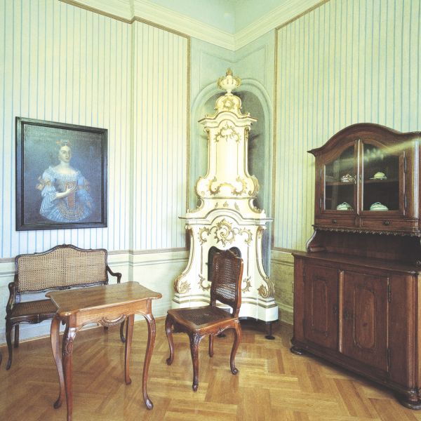 The exhibition "Furniture Art from Gothic to Biedermeier", which opened in spring 2000, introduces European furniture art from the period 1440 to 1850 approximately. In the exhibition, staged over a larger area than formerly, some 300 items of furniture - individual pieces and suites - can be seen in 27 of the mansion's rooms. The arrangement, which is tailored to the mansion's architecture, follows the history of European furniture in chronological order, presenting the various stylistic periods, and thus the history of applied arts, by means of individual masterpieces rather than by means of interiors. Other furnishings - tiled stoves, tapestries, carpets, chandeliers, and paintings - complement the exhibition. These works are from the same periods as the pieces of furniture they accompany.